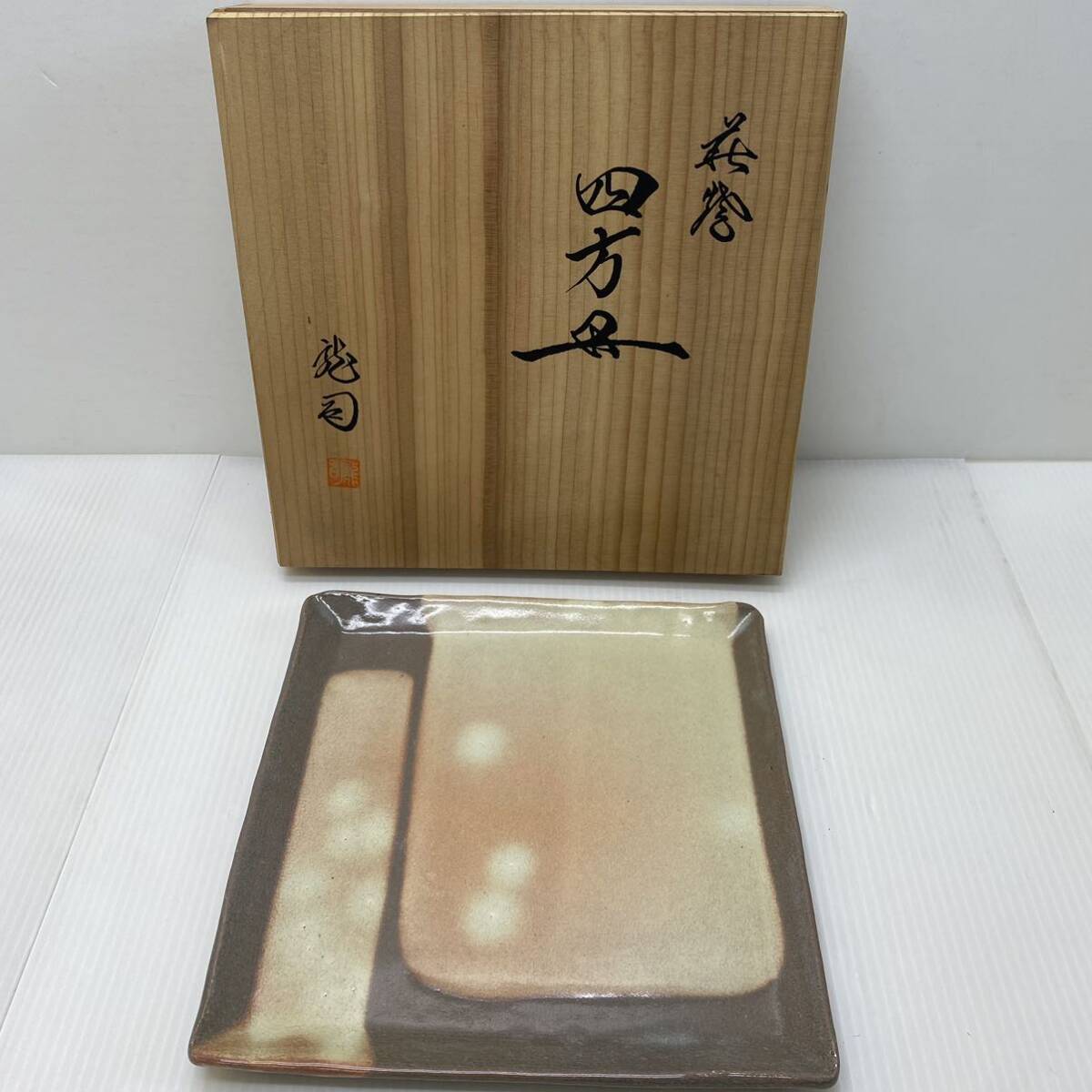 - 萩焼 龍司 四方皿 角皿 盛皿 和食器 大皿 中皿 プレート 供箱 未使用