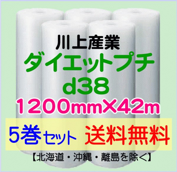 > 【川上産業 直送 5巻set 送料無料】d38 1200mm×42m エアークッション エアパッキン プチプチ エアキャップ 気泡緩衝材
