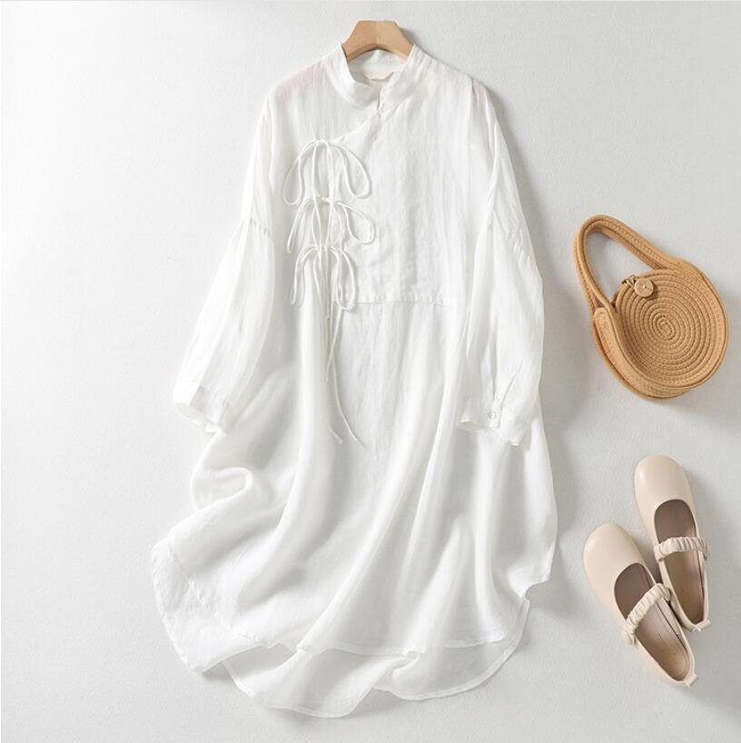 - LB340 シャツワンピース ミニ丈 無地 大きいサイズ ゆったり カジュアル 通勤 OL 大人 きれいめ 綿麻 チュニックワンピース XL