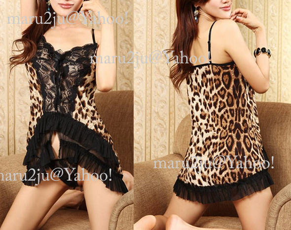 - ◇ 【匿名可】豹柄フリル付きセクシーベビードール ANI-11