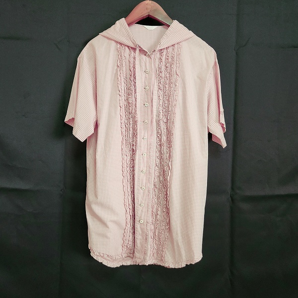 > #sxc ピンクハウス PINKHOUSE シャツ ブラウス ピンク 白 ギンガムチェック 半袖 フード付き チュニック ピコフリル レディース [871052]