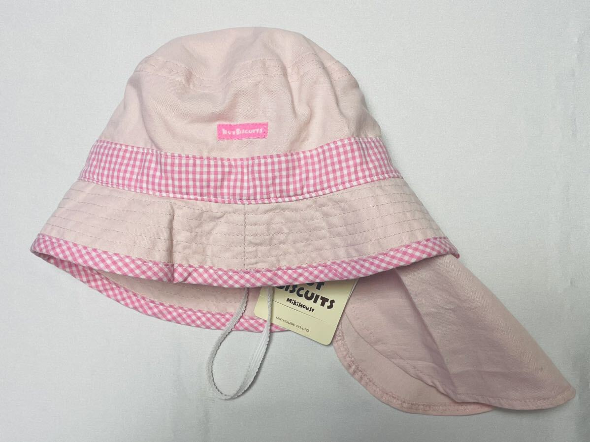 - 27 新品本物即決 46cm 日よけ付き 帽子 ミキハウス MIKI HOUSE ホットビスケッツ HOT BISCUITS ゴム付きUVカットクロッシェハット