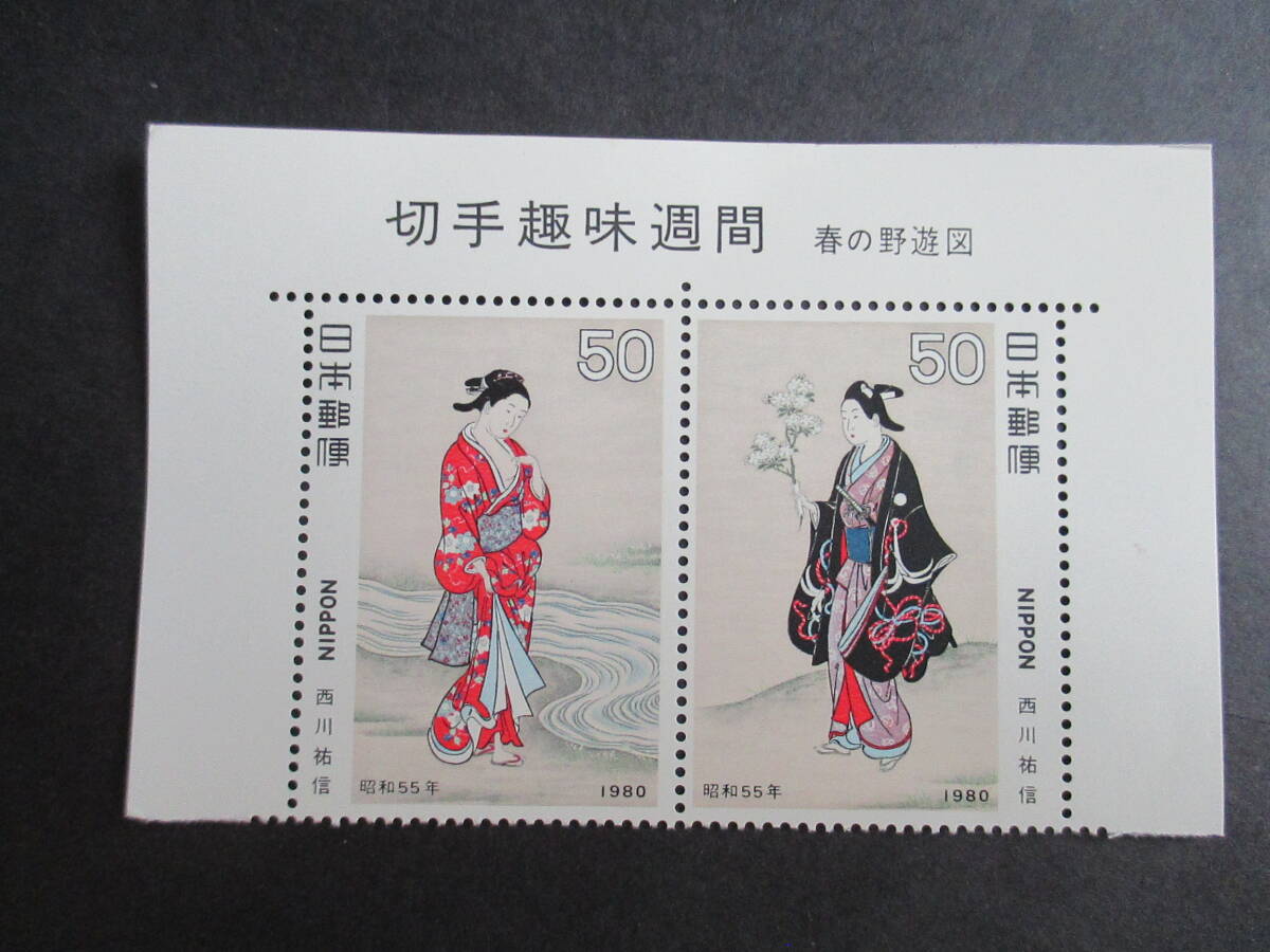 - 10c 3-2★切手趣味週間 春の野遊図 ★題字付き★1980年4月21日発行