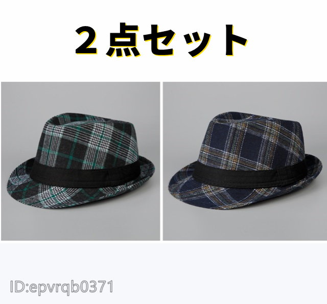 > 2点セット ソフト帽子◇新作 メンズキャップ ジャズハット 紳士 中折れハット フリーサイズ 56-58センチ イギリス 柄物 ネイビー/グリーン