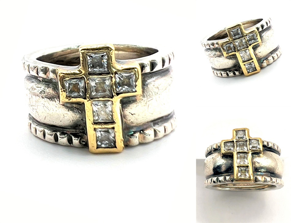 - 1999 入手困難 レア Loree Rodkin GOTHIC ローリー ロドキン ゴシック クロス リング K18 18K YG ジルコニア 925 9.5号 指輪