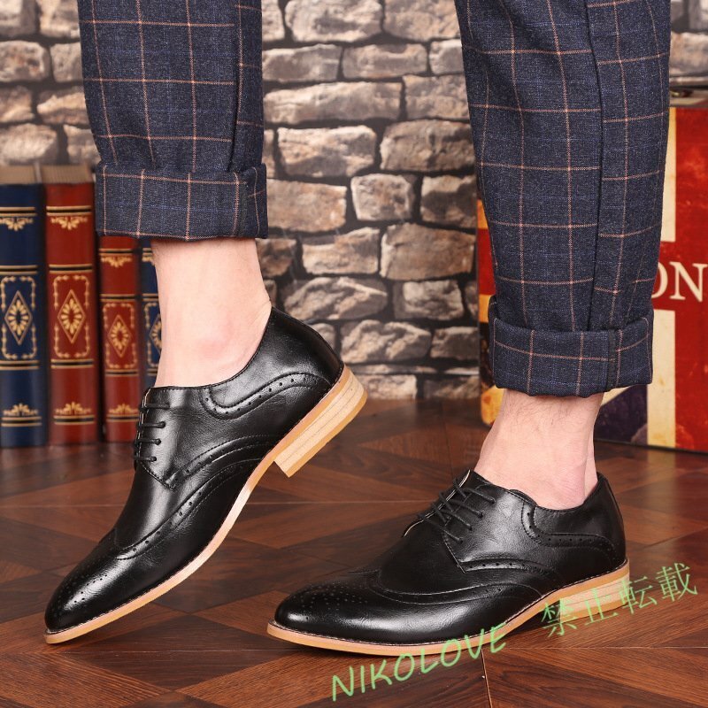 > LC293 ビジネスシューズ メンズシークレット革靴 お洒落 PUレザー紳士靴 ウイングチップ ブローグ 24cm ~27.5cm サイズ選択