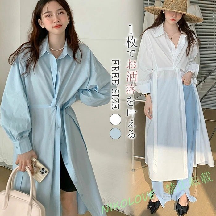 - LB894 ロングシャツワンピース レディース シャツワンピース 長袖 ワンピース マキシ丈 ゆったり ロングシャツ 春秋夏 多色選択可/均ヤード