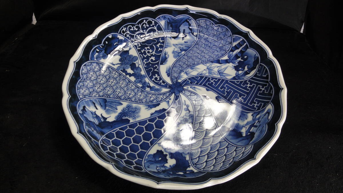 - ひ523.大皿 玄昌窯 輪花皿 祥瑞尺二 松竹梅 唐草模様