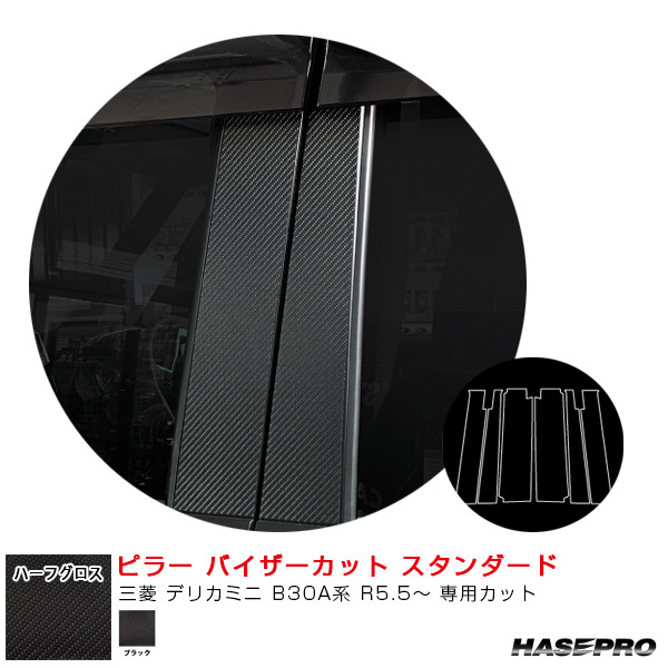 - アートシートNEO ハーフグロス ピラー バイザーカット スタンダード 三菱 デリカミニ B30A系 R5.5~ 【ブラック】 ハセプロ MSNHG-PM40V
