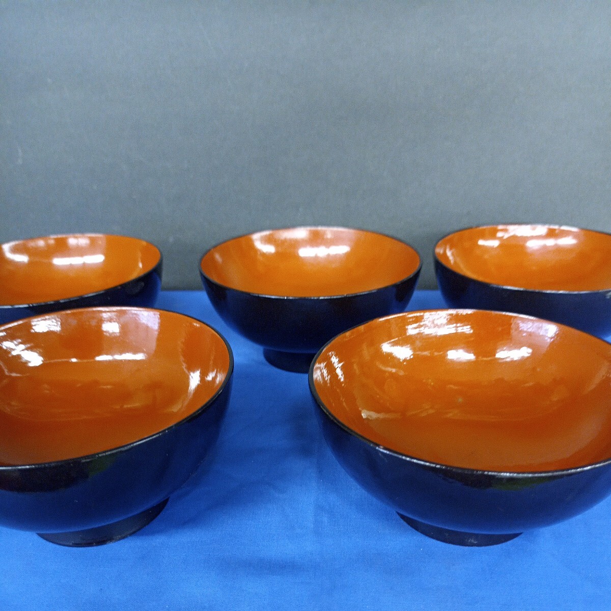 - 昭和レトロ■漆器 木製 汁椀 内朱 5個 お椀 和食器