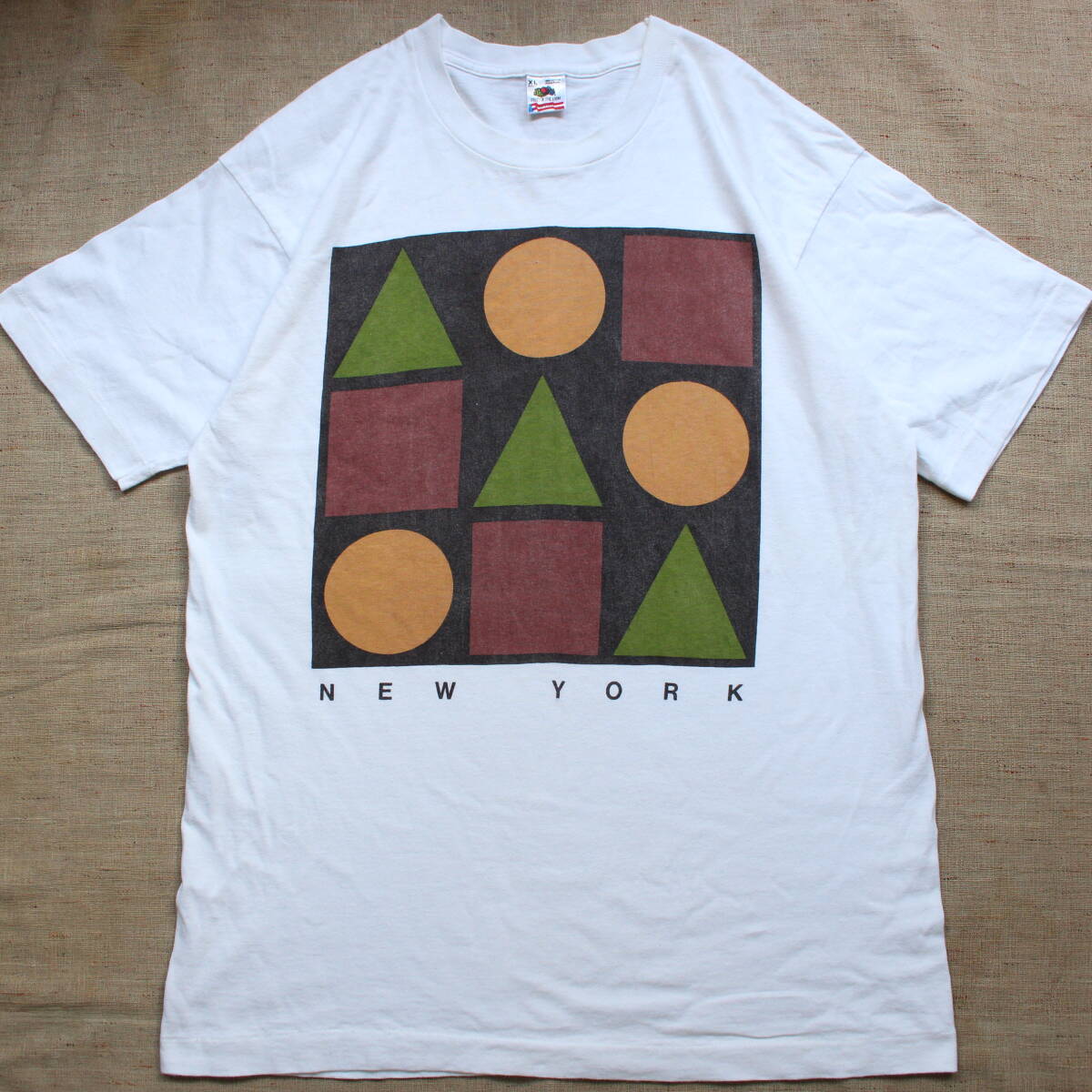 > レア 1990s New Yorkニューヨーク 幾何学 球体ヴィンテージ ビンテージ アートTシャツ フェード古着 芸術ARTエッシャーUSA 丸 四角 三角形
