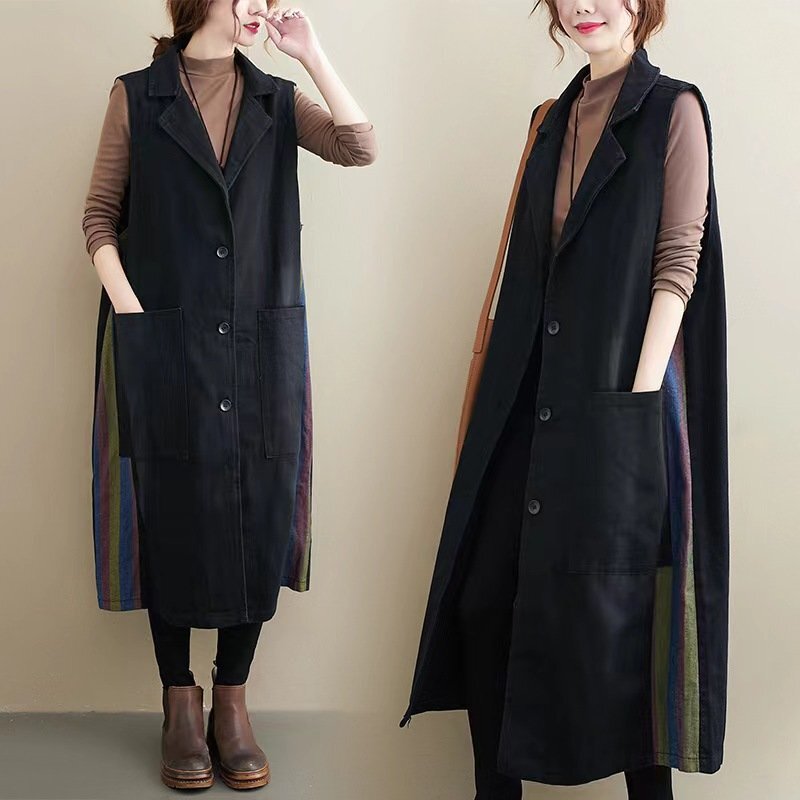 - LRM777★新品ロングベスト レディース 黒 ベスト 夏 薄手 サマージャケット 袖なし チョッキ ファッション ゆったり