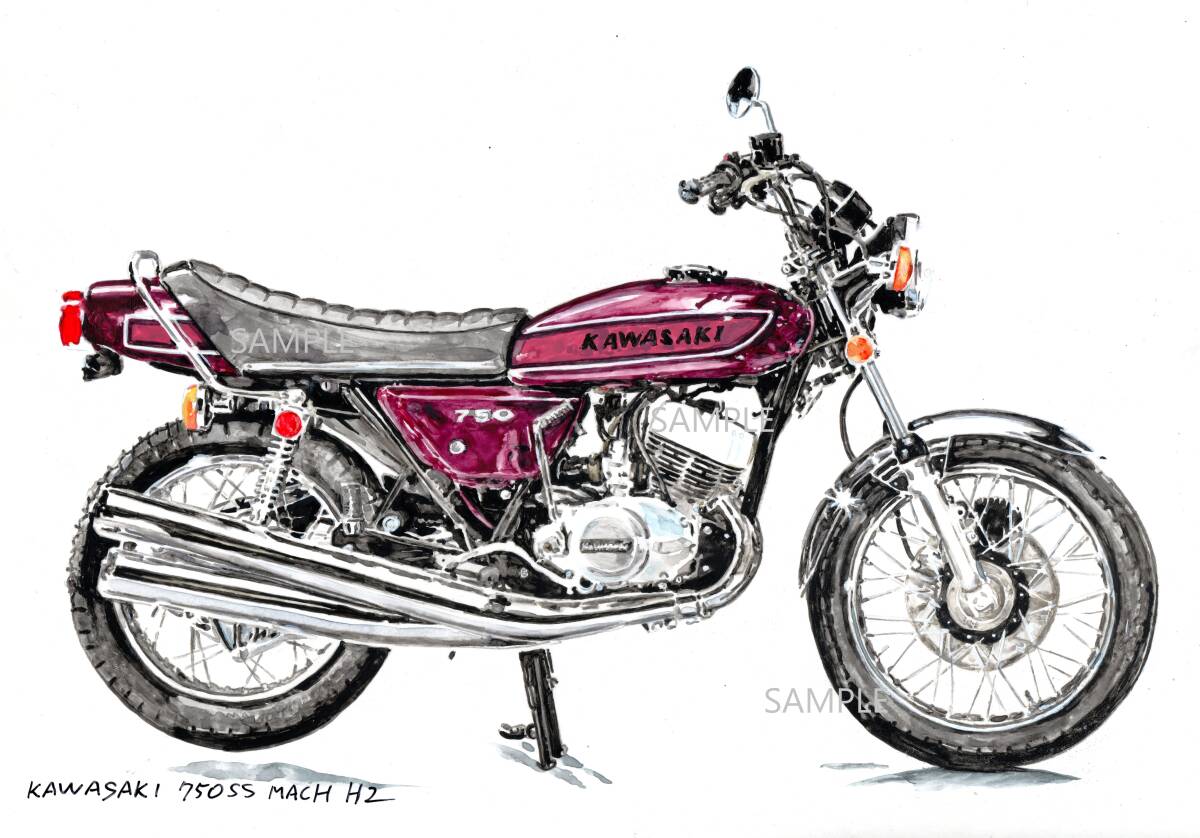 - A4プリントです カワサキ750SS マッハ H2B 水彩画 バイクイラスト