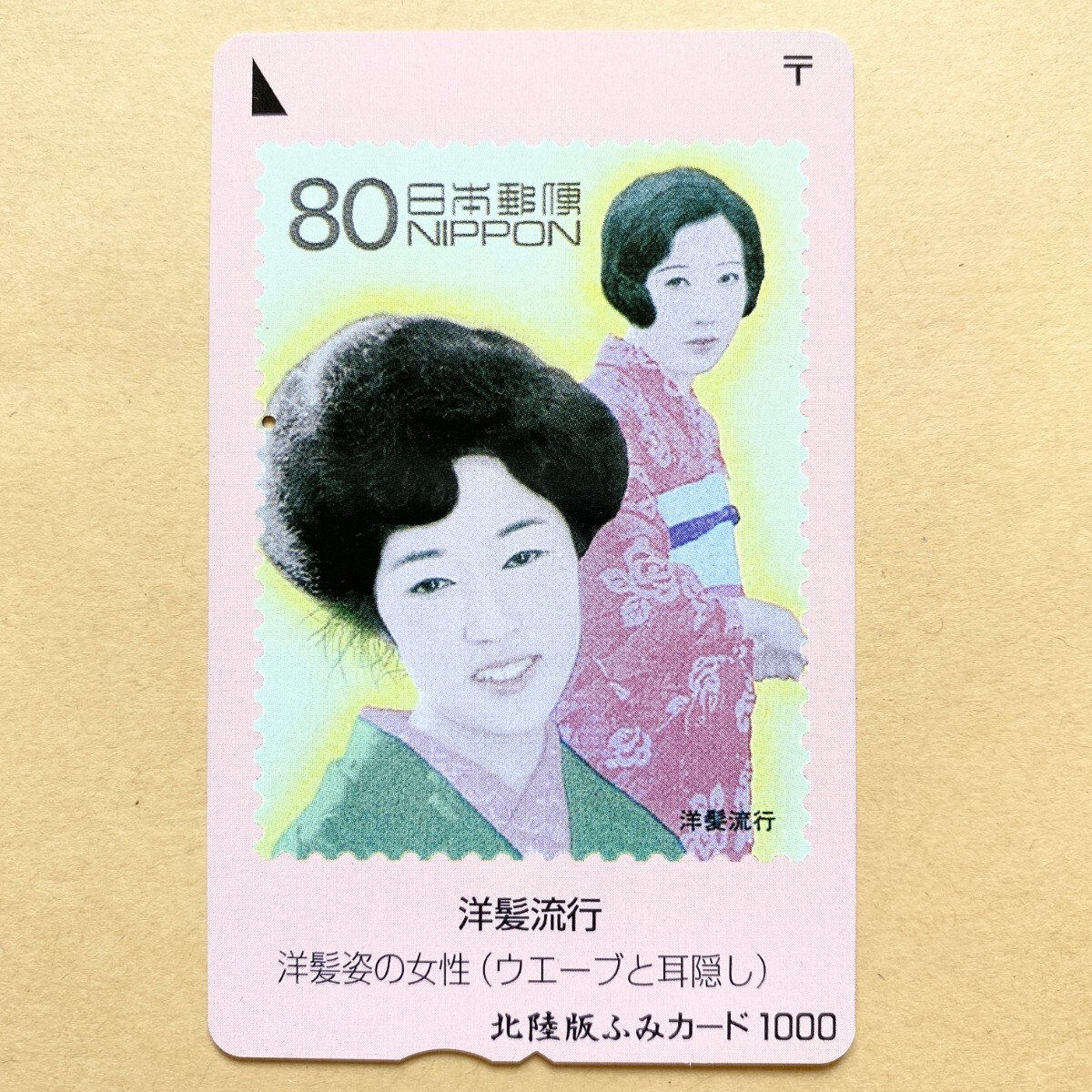 - 【使用済】 ふみカード 北陸版 洋髪流行 洋髪姿の女性(ウエーブと耳隠し)