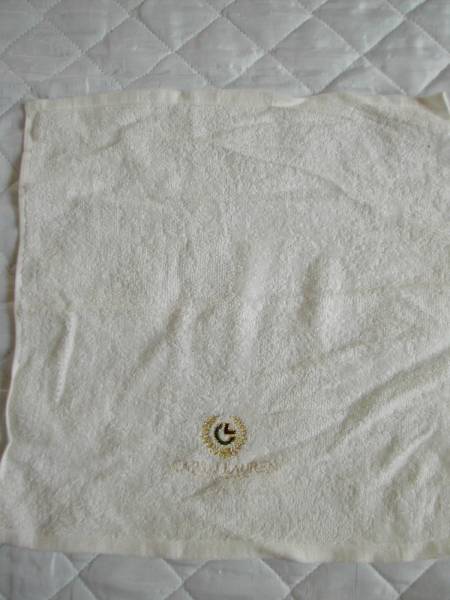 - ハンドタオル 32x34cm CARLO LAUREN ロゴが金字刺繍の白い