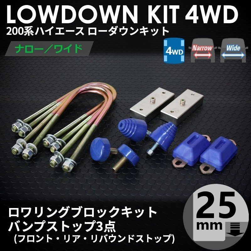 > ○ティスファクトリー○ ハイエース 200系 1型-7型 4WD ローダウンキット 1 [ブロック 25mm (1インチ) + バンプ 3点] S-GL DX 標準 ワイド