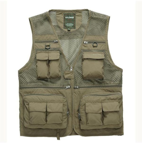 - 新品 /多機能ベスト メンズ メッシュ フィッシングベスト チョッキ お釣りベスト アウトドア ジレ 作業服 カメラマン / カーキ