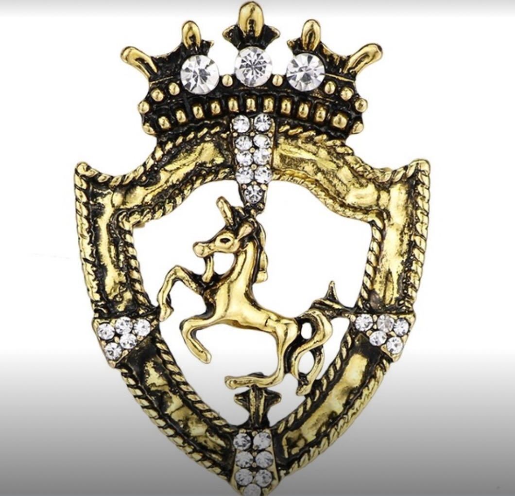- 乗馬 ラインストーンブローチ アンティークゴールド