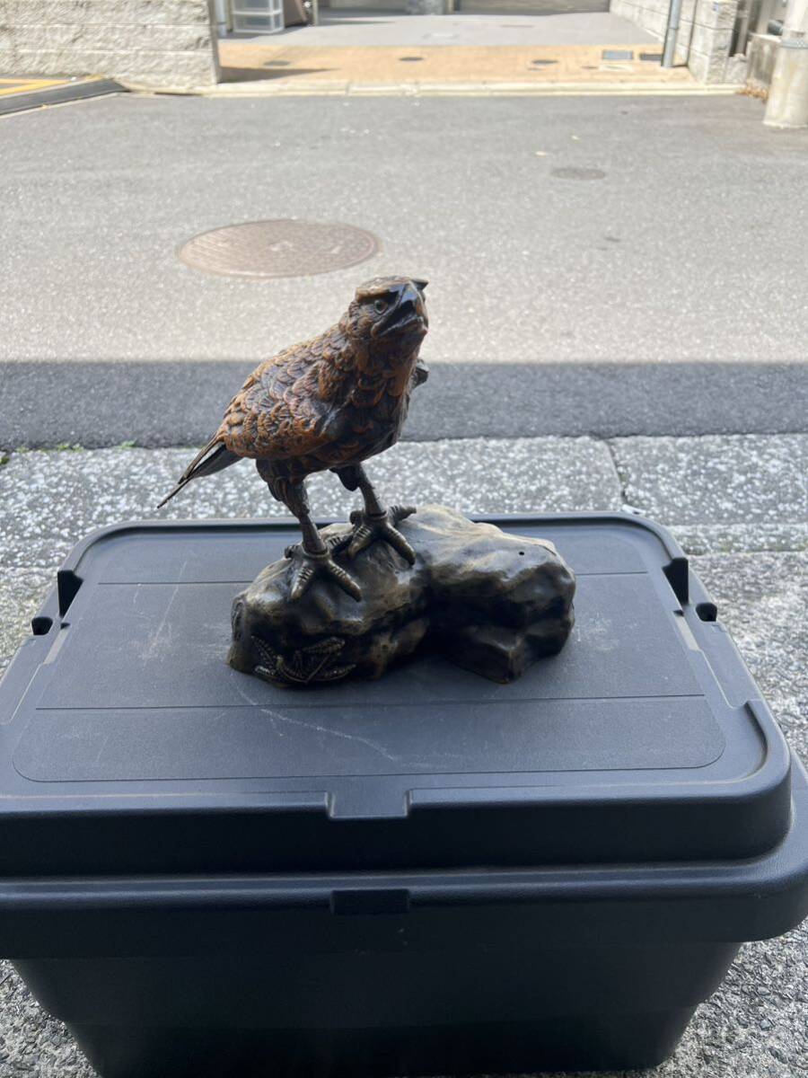 - 鷹 タカ 彫金 置物 オブジェ インテリア アンティーク 縁起物 昭和 当時物 hawk engraving antique