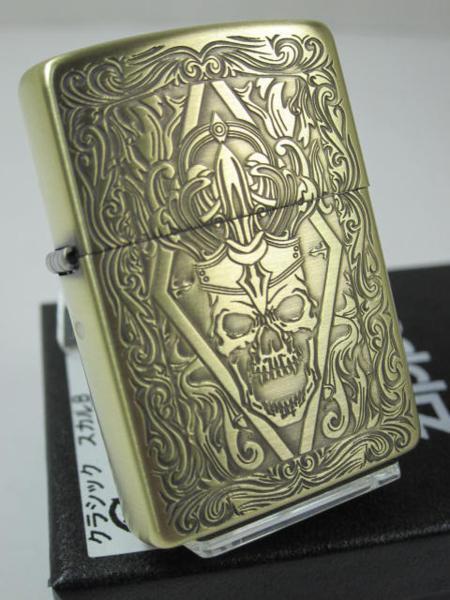 > 2014年製 Zippo クラシック スカル Skull 彫刻 ブラス真鍮古美B 新品