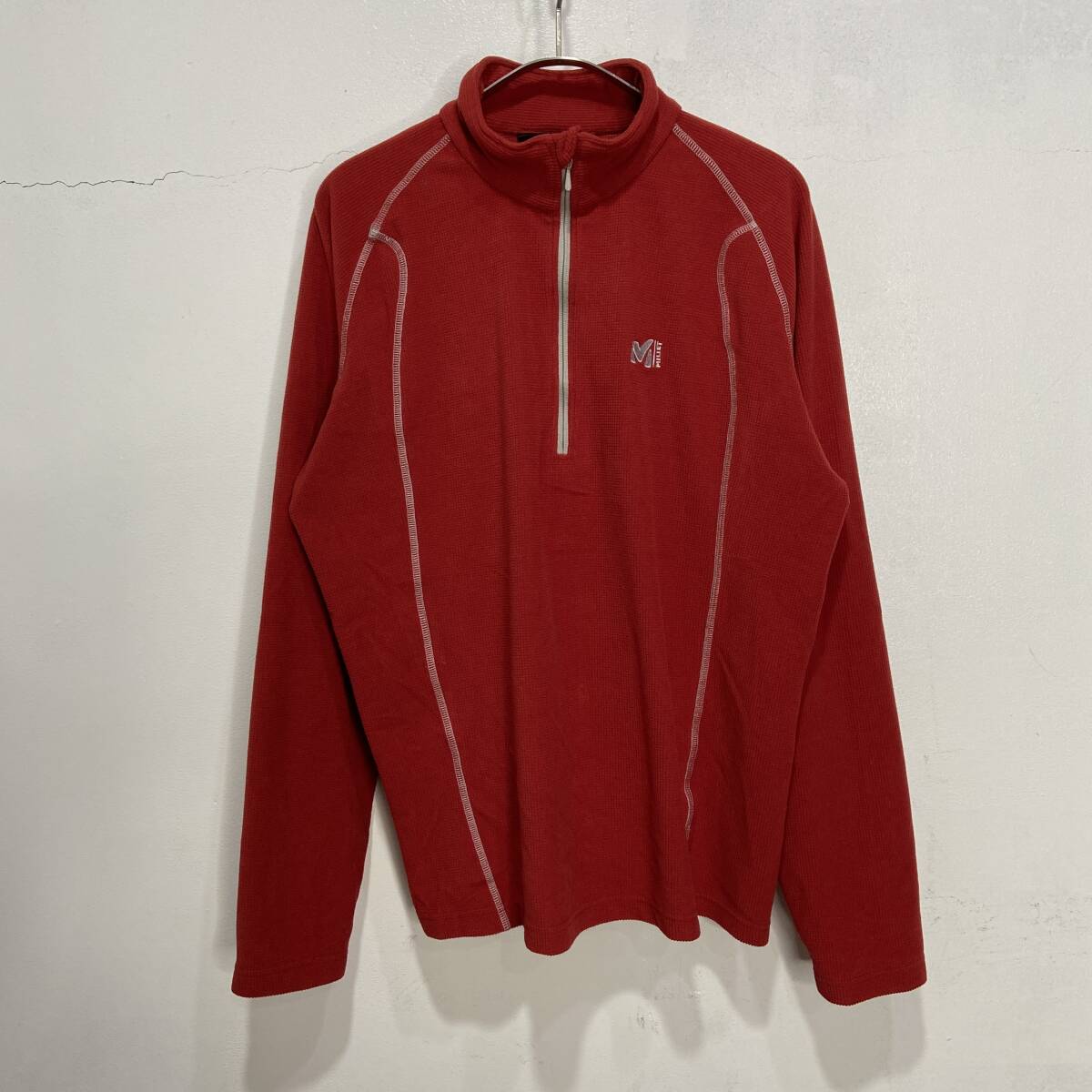 - 送料無料☆MILLET☆ミレー☆ハーフジップフリースプルオーバー☆ワンポイントロゴ☆ワッフルフリース☆エンジ色☆L☆E24M