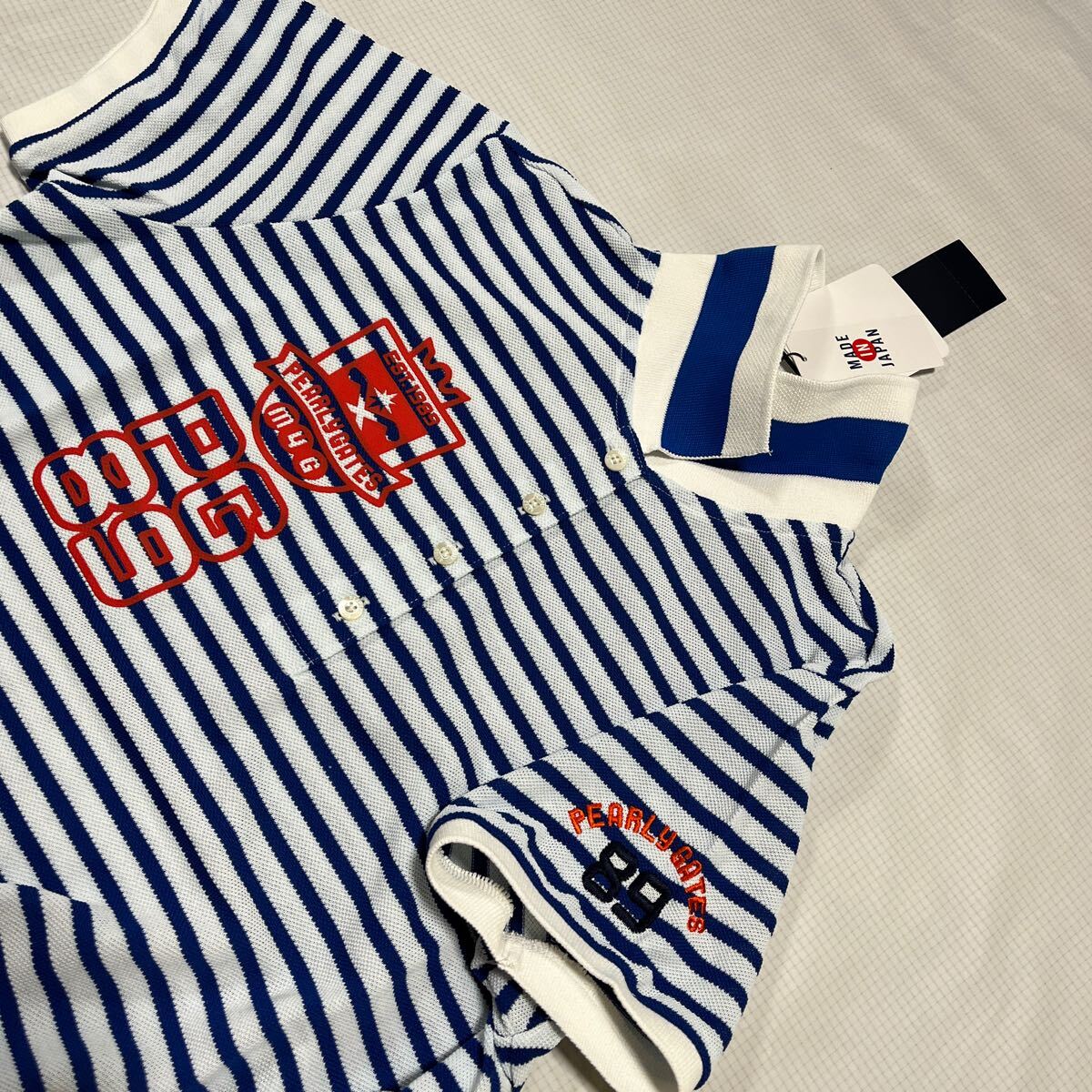 - 新品正規品 パーリーゲイツ サイズ1 涼しい ボーダー ポロシャツ 高品質 シワになりにくい 襟裏ロゴ ホワイト×ブルー 送料無料