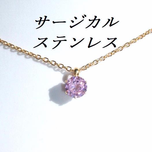 - ゴールドカラーサージカルステンレス一粒ピンクCZネックレス
