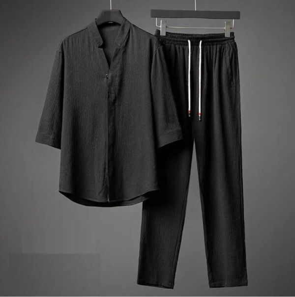 > メンズ 新入荷 / Tシャツ ロングパンツ パンツ メンズ ルームウェア 部屋着 涼しいセットアップ 上下セット / ブラック