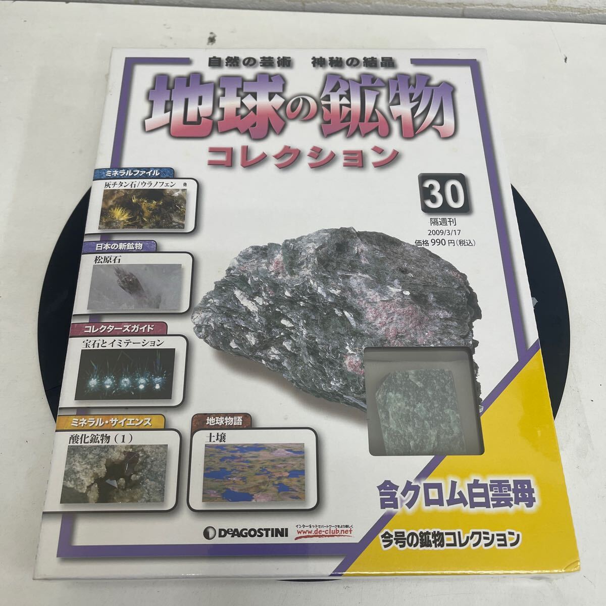 > 複 Y513. 39. デアゴスティーニ 『地球の鉱物コレクション』30巻. 含クロム白雲母 保管品 シュリンク付き (多少破れ箱歪みあり)