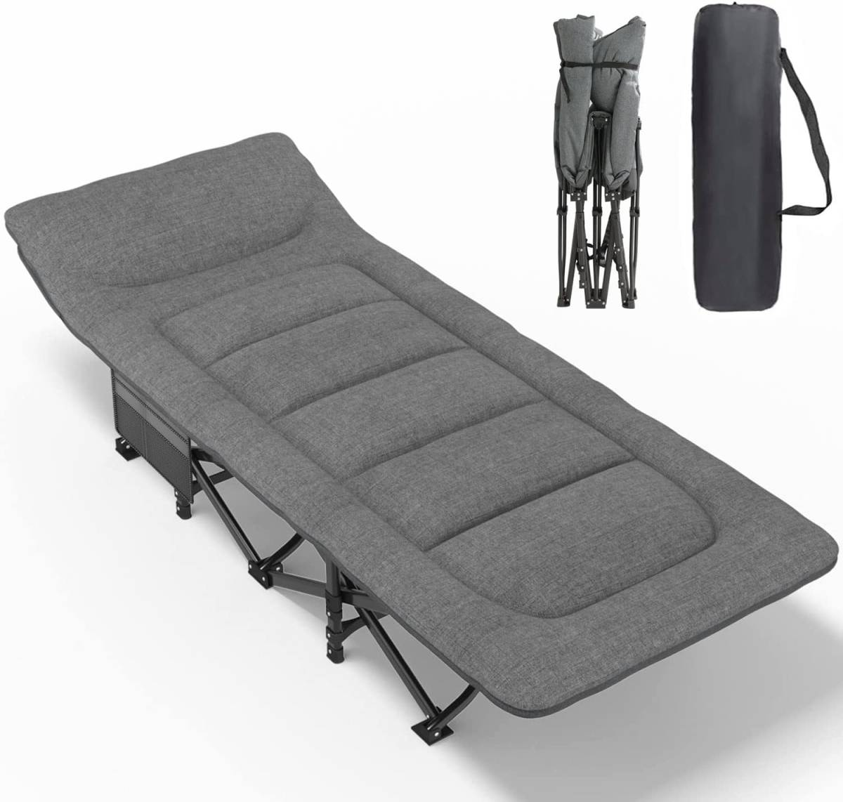 > 【新品】ATORPOK 折り畳み式ベッド マットレス一体型 快適ヘッドレスト 耐荷重200kg アウトドア折りたたみベッド コット グレー