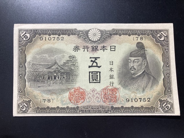 - 【注目/珍品/レア/希少/貴重】3次5円札 菅原道真 補刷券 752