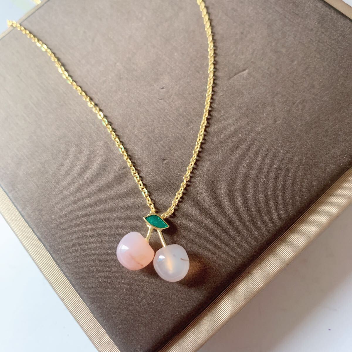- ◇塩源瑪瑙◇メノウ◇アゲート◇ネックレス◇ペンダント◇桜桃形◇天然石◇パワーストーン◇巾着袋付き◇プレゼントにも 029P51503