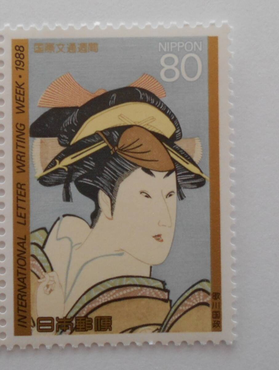 - 文通週間 1988 歌川国政画・岩井粂三郎の千代 未使用80円切手