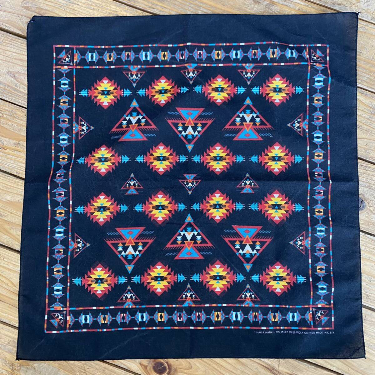 - 送料無料 Vintage ネイティブ柄 バンダナ アメリカ仕入れ ハンカチ おしゃれアイテム 小物 ブラック 黒色 雑貨 ヴィンテージ A1153