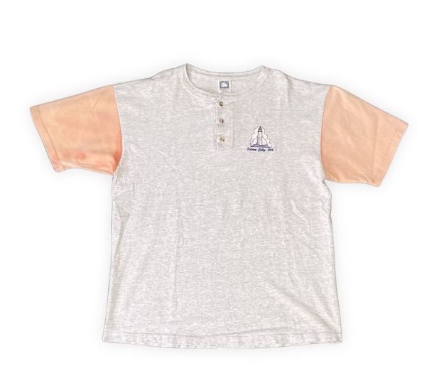 > 90's 米国製 COTTON DELUXE アンビル ヘンリーネック Tシャツ OCEAN CITY MD ツートン 袖フェード 刺繍 XL [ta-1080]