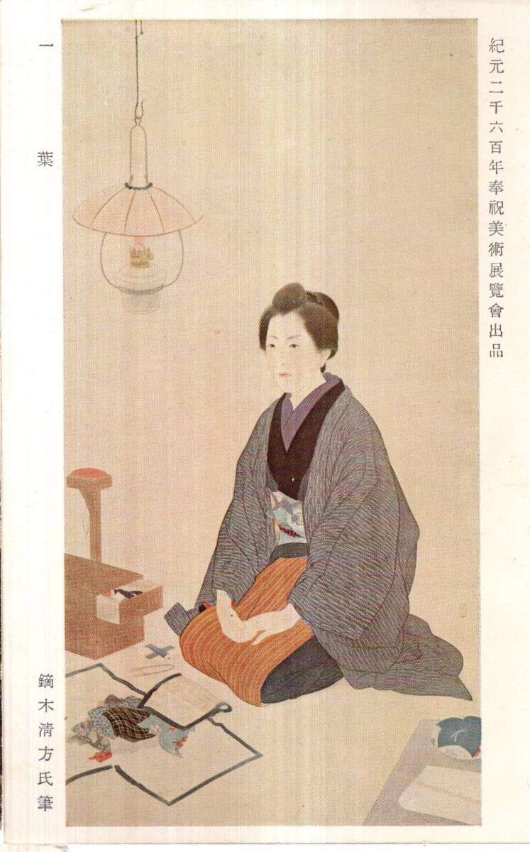 - 絵葉書 紀元二千六百年奉祝美術展覧会出品 “一葉” 鏑木清方氏筆 昭和15年11月10日紀念スタンプ 美術絵画絵はがき