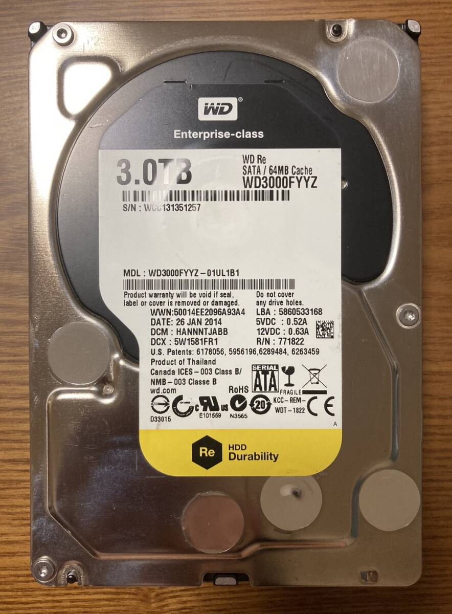 - 【状態◎】Western Digital ウェスタンデジタル WD Re エンタープライズ WD3000FYYZ 3.5インチ HDD 3TB(高パフォーマンス・高信頼HDD)