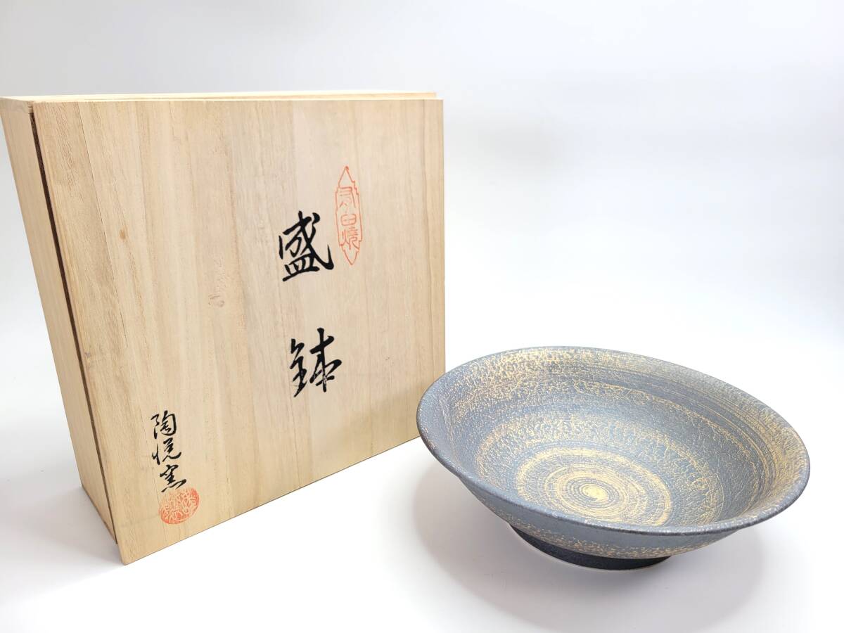 - 【送料無料・長期保管未使用品】有田焼 陶悦窯 南蛮金かすりなぶり鉢 盛鉢 在銘 桐箱付き
