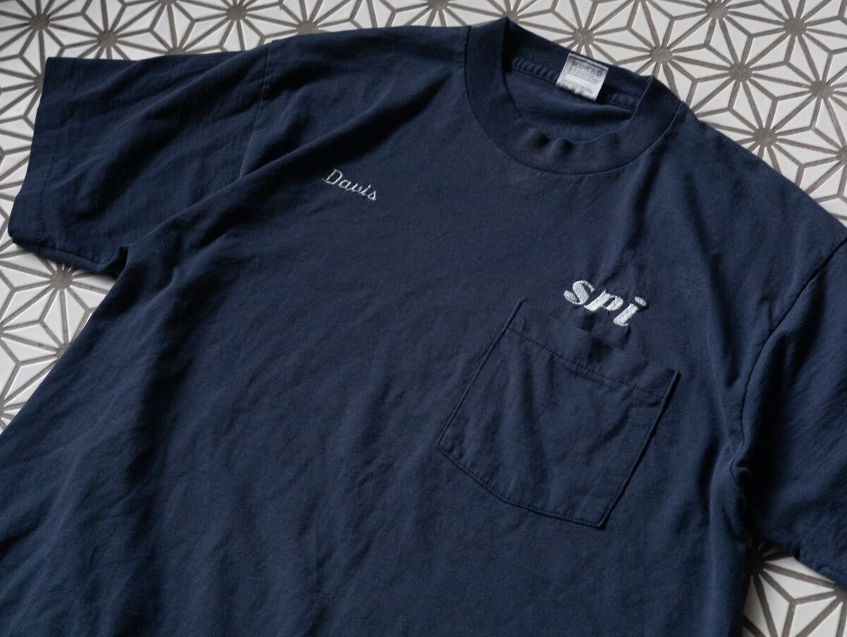 - 【USA製】90s fruit of the loom ネーム刺繍 tシャツ シングルステッチ ヴィンテージ アメリカ製 80s フルーツオブザルーム ポケT ネイビー