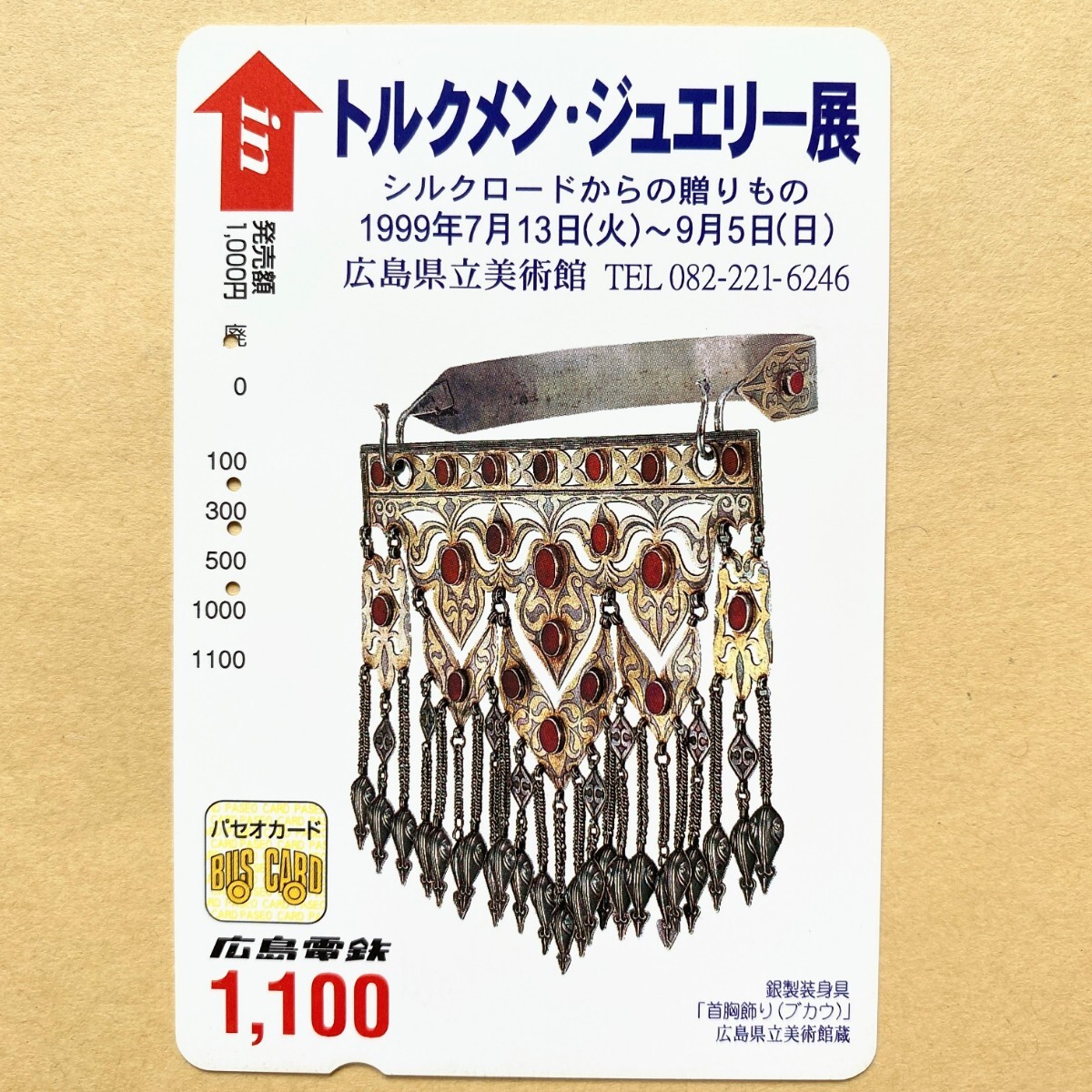- 【使用済】 パセオカード 広島電鉄 トルクメン・ジュエリー展 銀製装身具「首胸飾り(ブカウ)」