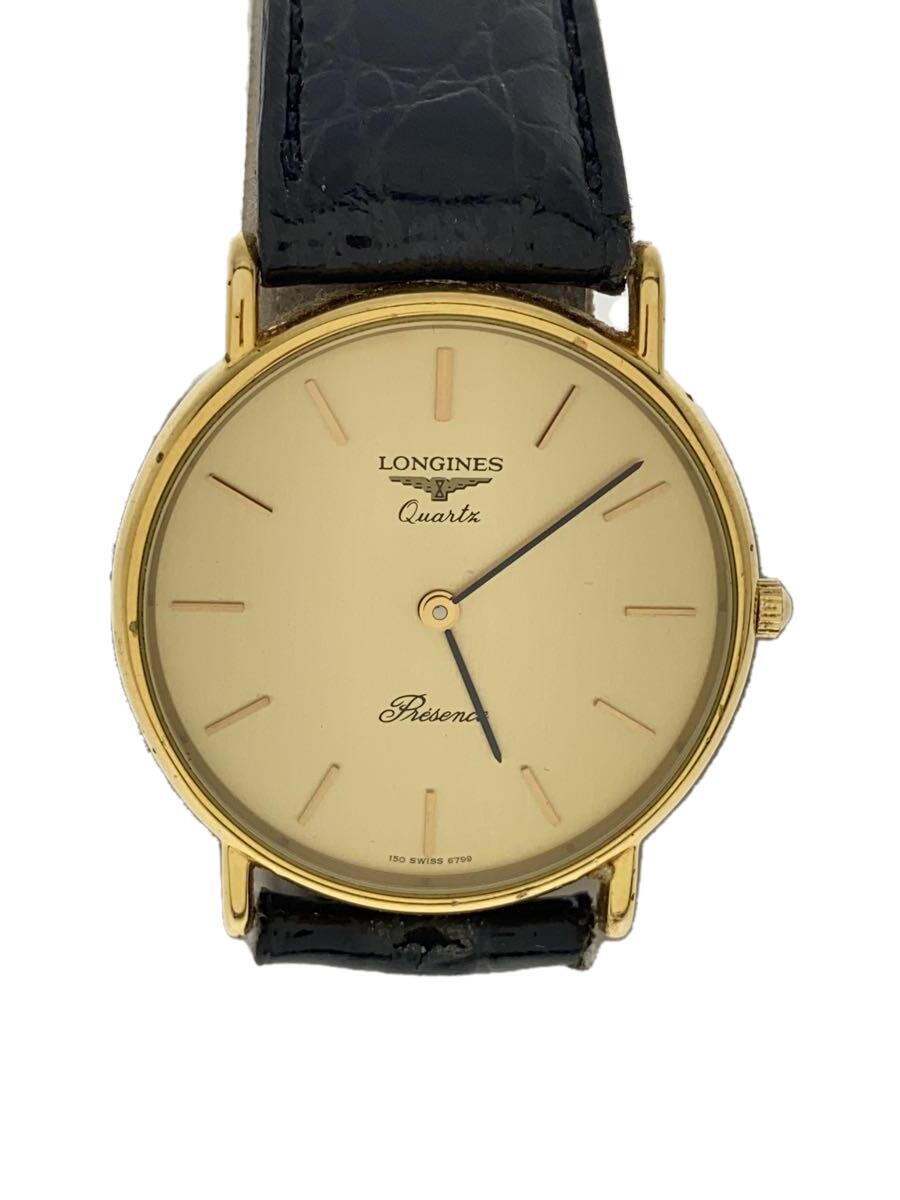 - LONGINES◆クラシック/クォーツ腕時計/アナログ/レザー/GLD/社外ベルト
