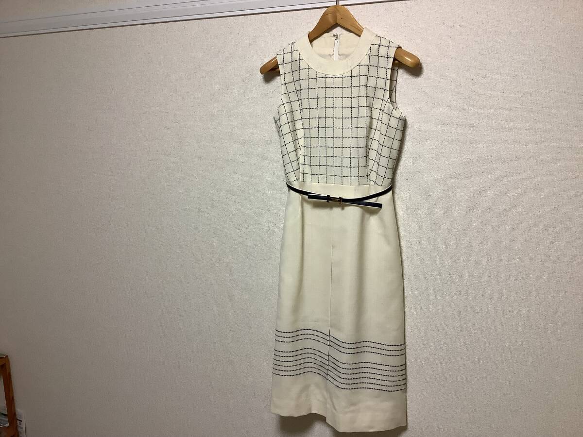 - 訳あり 新品未使用 東京ニュースター ノースリーブ ワンピース 9号 ベージュ/ネイビー ベルト付き 送料無料