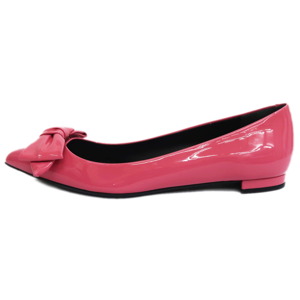 - 【名東】グッチ フラットパンプス ピンク サイズ37 リボン エナメル レディースシューズ 女 靴