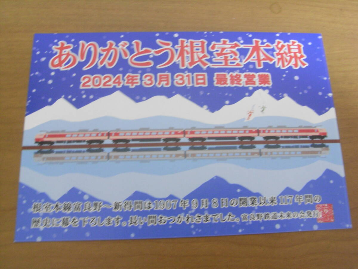 - 「ありがとう根室本線 2024年3月31日最終営業 富良野鉄道未来の会発行」 ポストカード