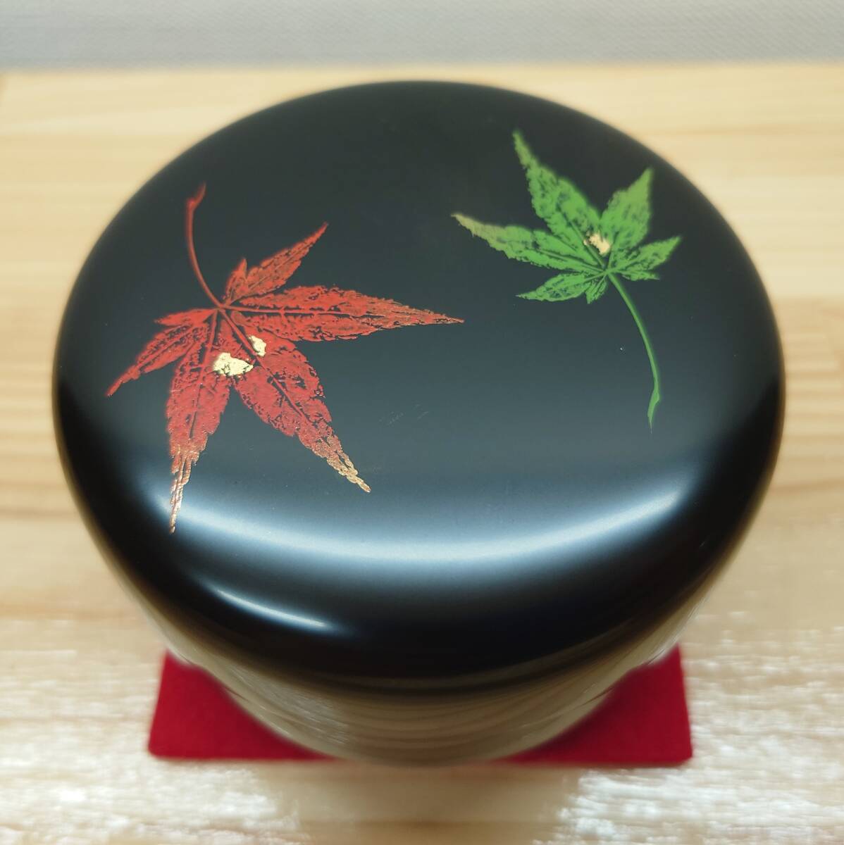 - 【逢絢亭・新品】茶道具 棗 平棗 押楓蒔絵 真塗 木製 職人協賛シリーズ 紙箱入り