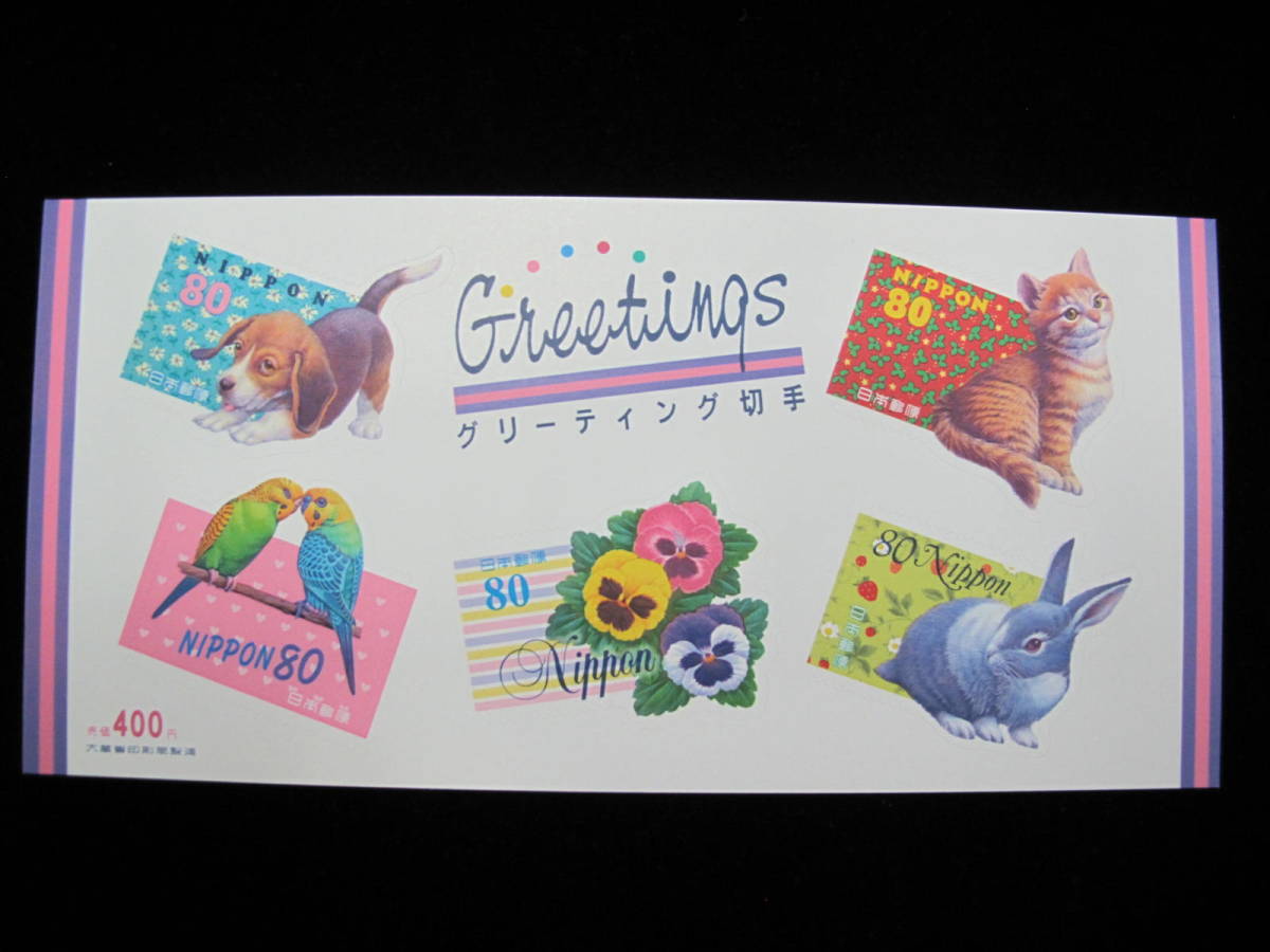 - グリーティング切手 80円切手5種 イヌ・ネコ・インコ・パンジー・ウサギ 80円記念切手シート⑤