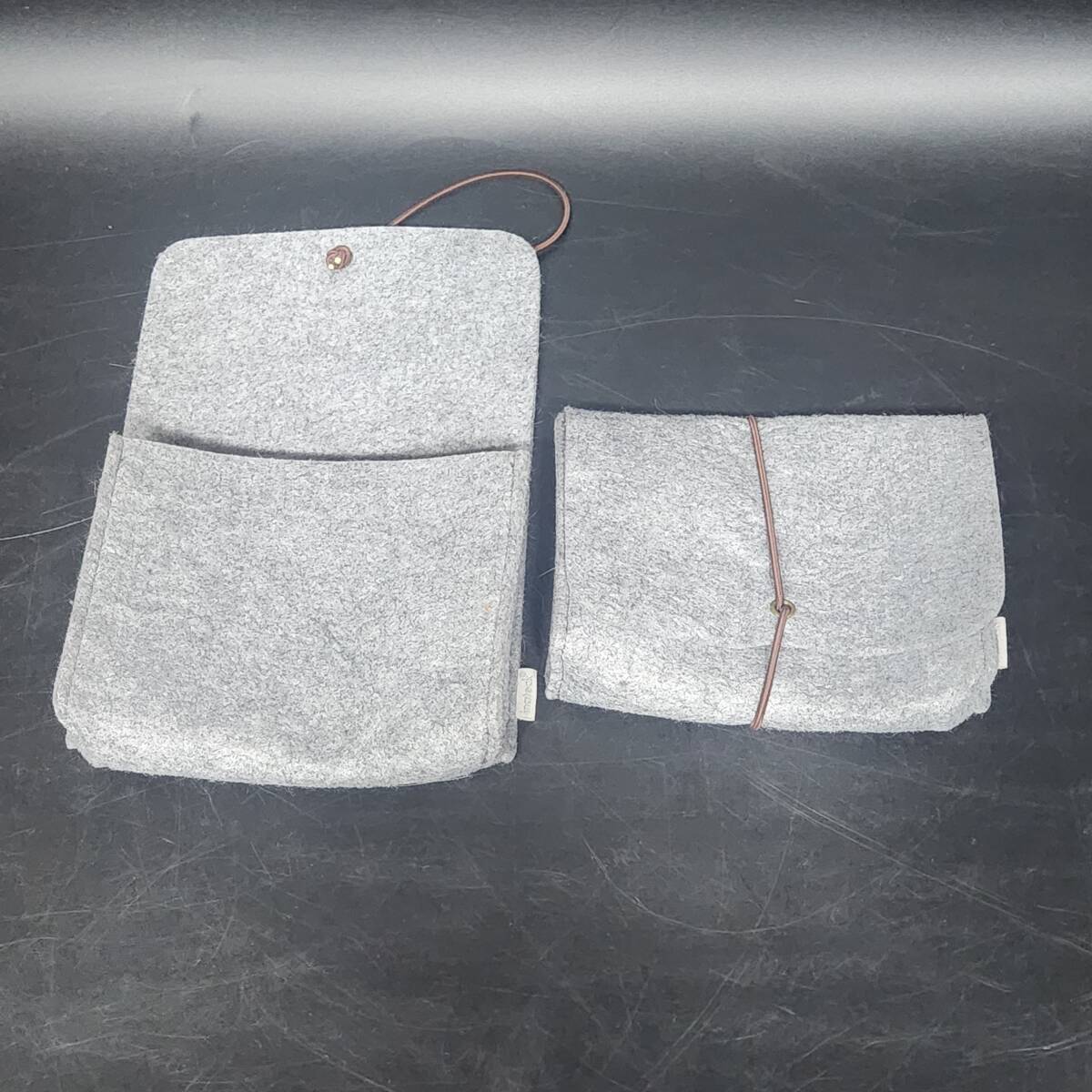 > M60 フェルト製小物入れ2個セット ポーチ グレー 16×13㎝