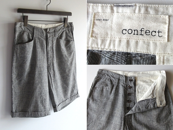- nest Robe confect ネストローブ コンフェクト グレンチェック リネンコットン ショートパンツ ショーツ 3 グレー 日本製 春夏