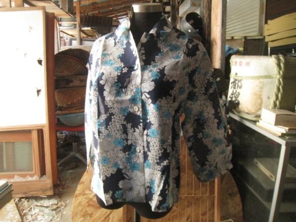 - 未使用 レトロ レディースシャツ モダン柄 七分丈薄手のシャツ ポリエステル100%/23N5.16-69