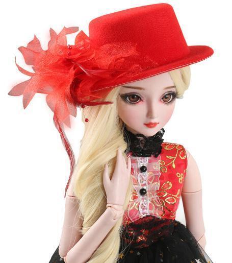 - 値下げ 1/3ドール用 帽子 ハット 羽根付き 赤 レッド ドール服